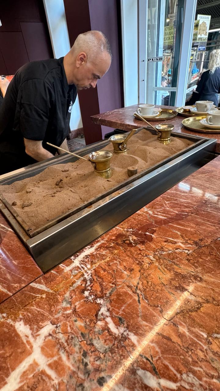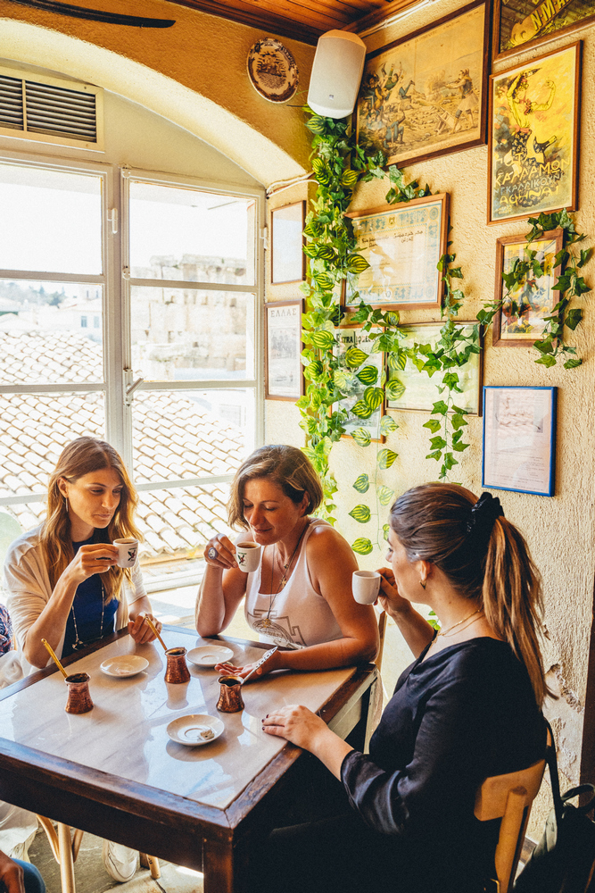 A charming pastry shop: Conclude your journey on a sweet note with traditional Greek pastries like loukoumades (honey fritters), and bougatsa. Enjoy your traditional Greek coffee alongside turkish delight (loukumi).