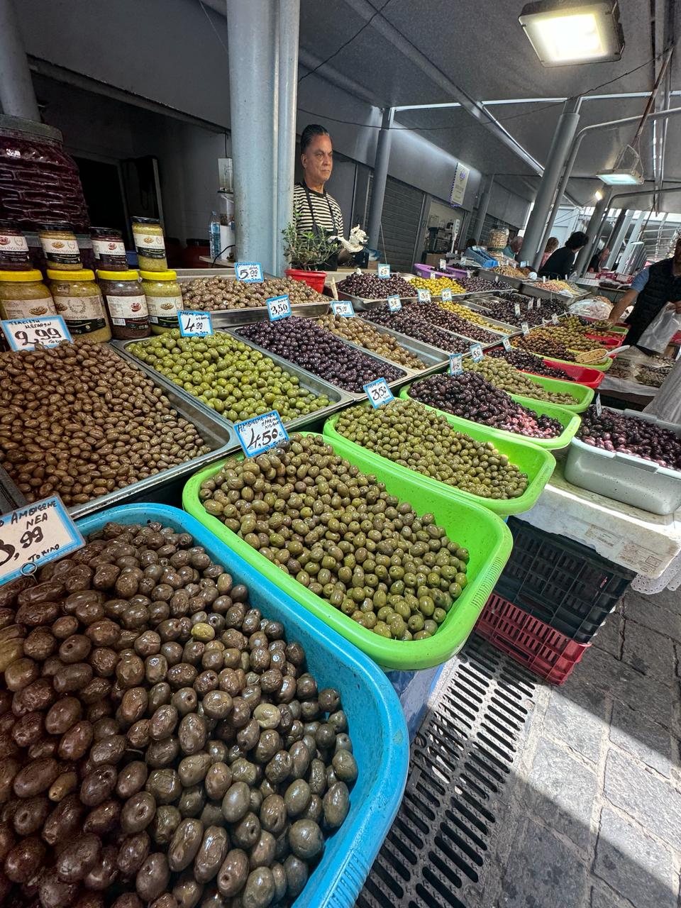 A vibrant food market: Immerse yourself in a vibrant Greek market, a sensory feast of colors and scents. Experience the rich aromas of fresh spices and the visual bounty of fruits and vegetables. Sample marinated olives, charcuterie and cheeses, offering a taste of Greece's exceptional culinary heritage.